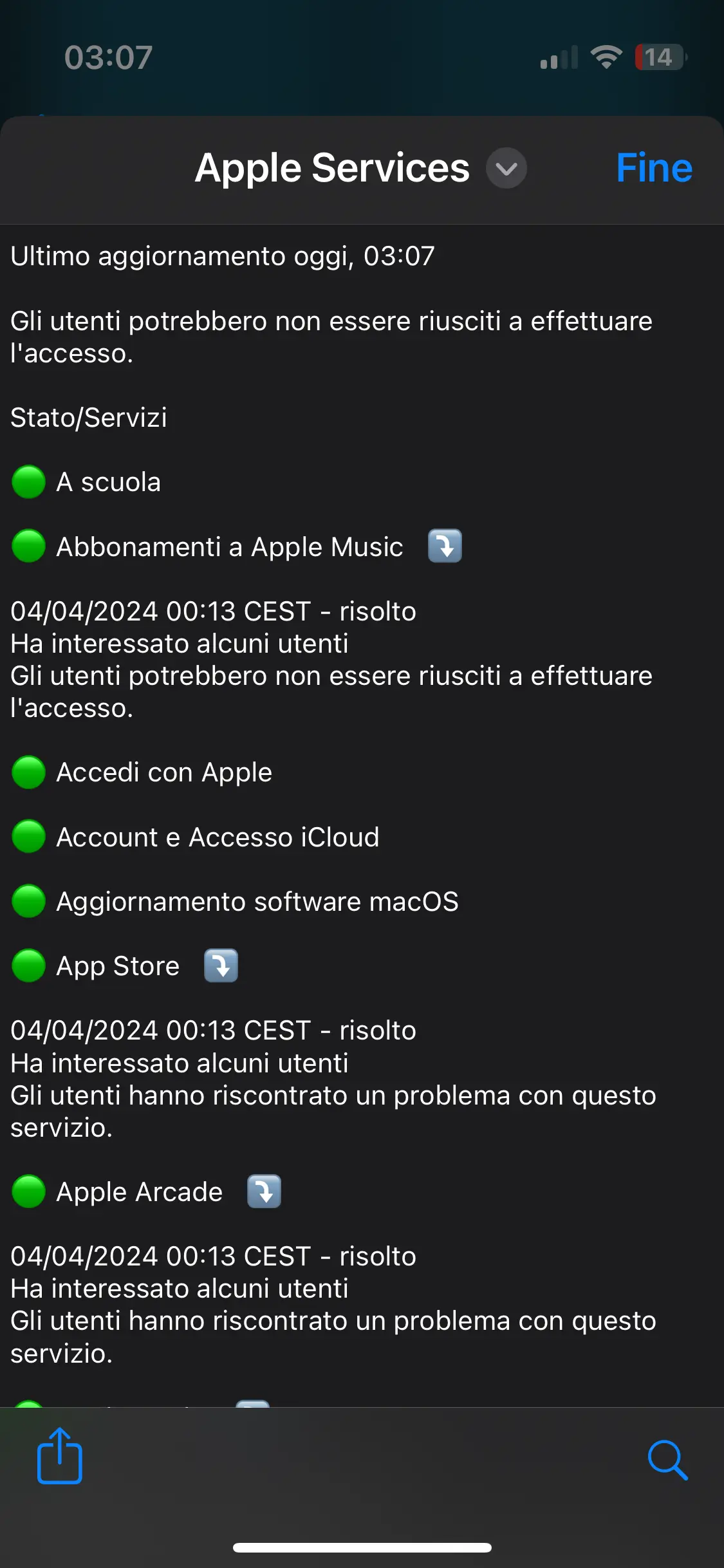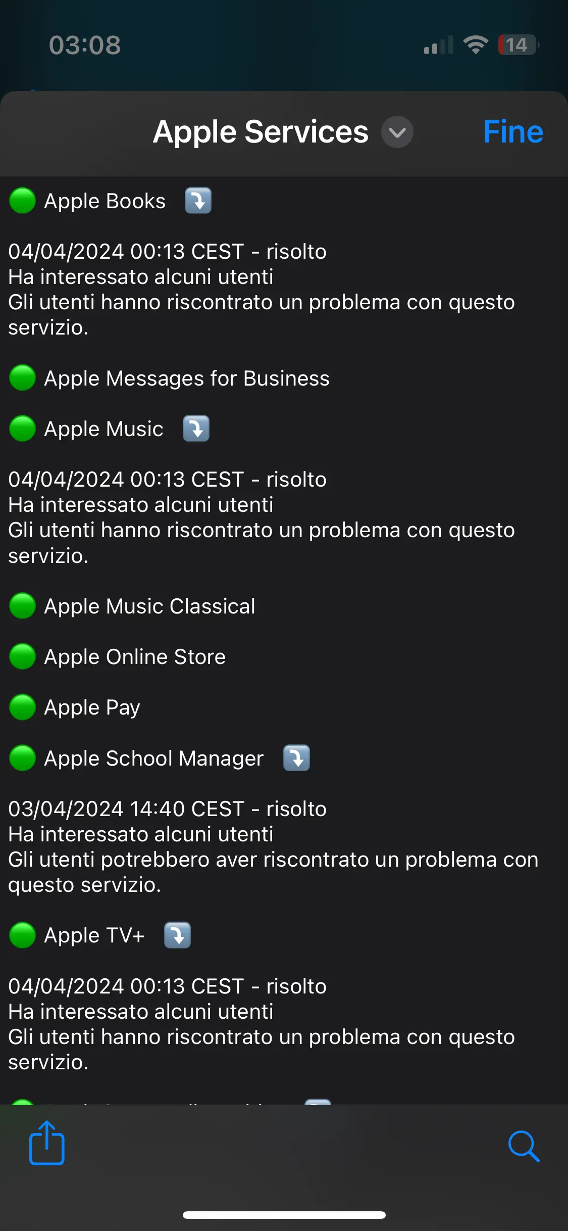 Con questo semplice comando potrete visionare lo stato dei servizi Apple, nel caso riscontriate problemi con alcuni di essi.